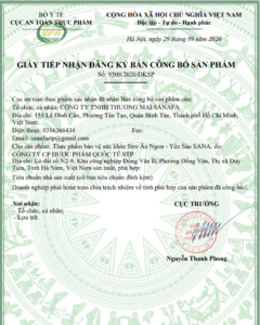 Sản phẩm bảo vệ sức khỏe của SAFANA được chứng nhận đầy đủ các tiêu chuẩn đảm bảo an toàn phát hành ra thị trường.