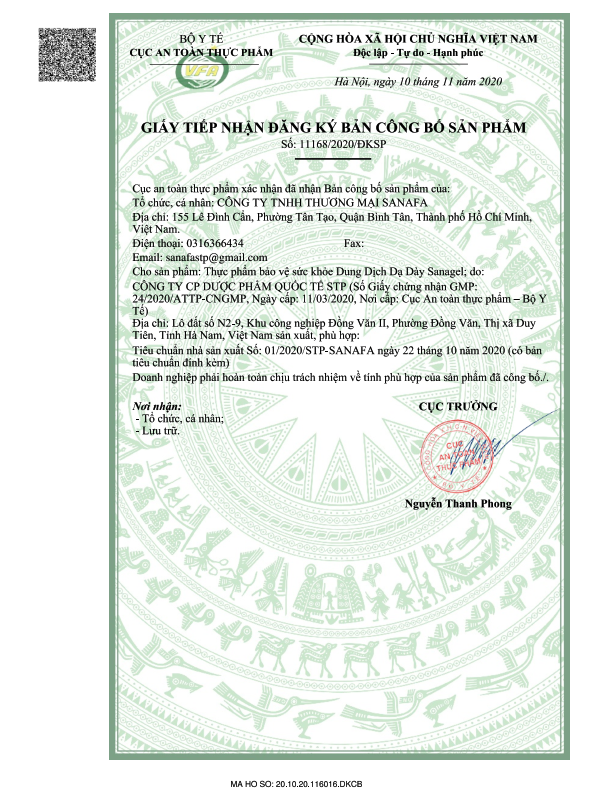 • Thực phẩm bảo vệ sức khoẻ DUNG DỊCH DẠ DÀY Sanagel